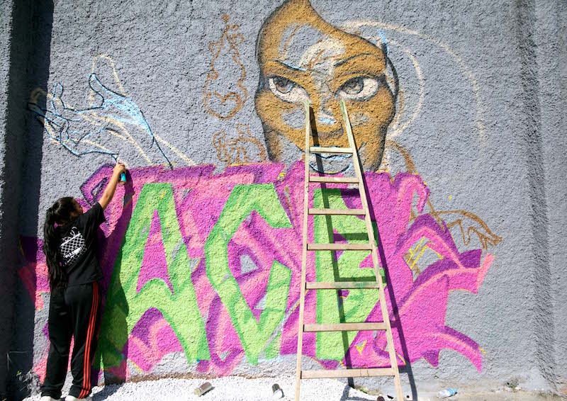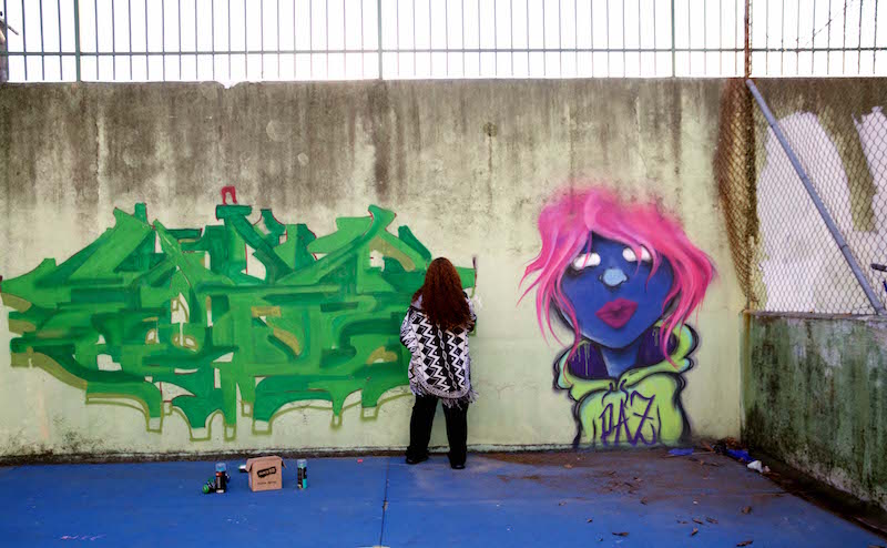 Organizadores de grandes eventos de graffiti dificilmente pensam nessas questões. Outro ponto é o machismo, o assédio sempre está presente, o que faz muitas artistas não se sentirem à vontade nos espaços. Muitas tem o histórico de violência em suas vidas, e sabemos que a rua ainda é um ambiente hostil para as mulheres.