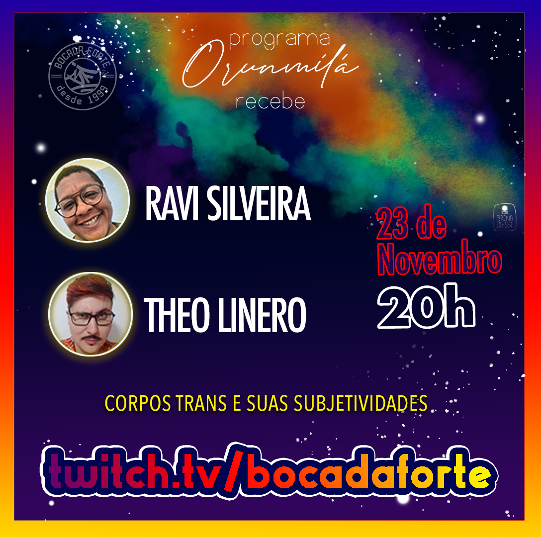 Acompanhe o Orunmilá todas as segundas às 20h no canal da Twitch do Bocada Forte. Todas as edições do programa também ficam disponíveis no Youtube.