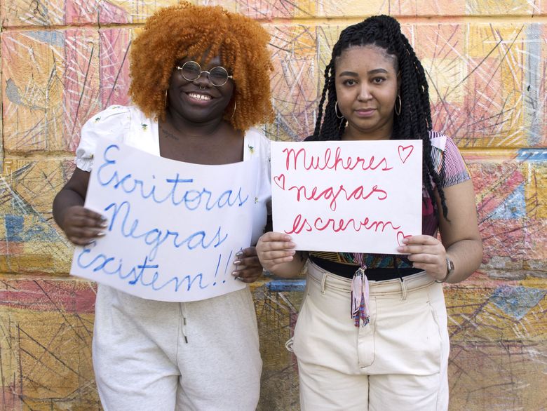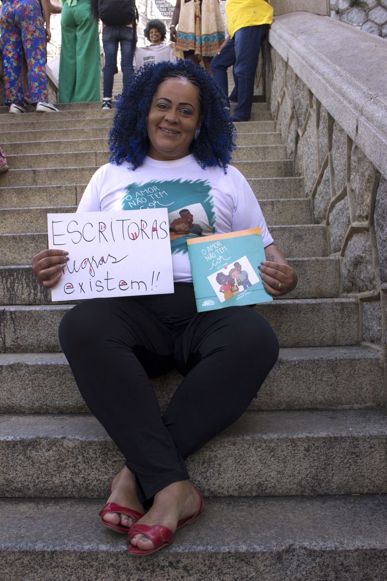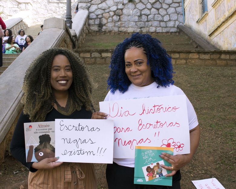 Com cartazes e livros nas mãos, elas exibiam com orgulho suas escritas e suas