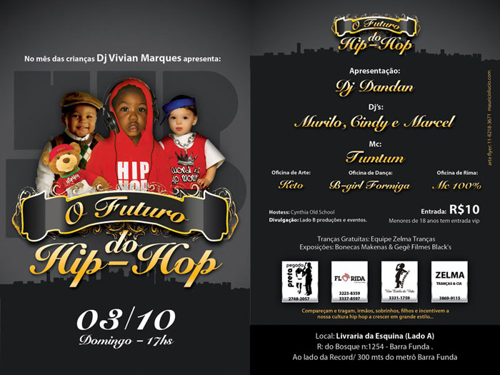 A próxima edição do evento será realizada domingo (3/10), na Livraria da Esquina, na Barra Funda, em São Paulo. Os DJs mirins Marcel, Cindy e Murilo estão entre os destaques da festa, que também contará com o MC Tumtum e o b-boy Will Jackson.