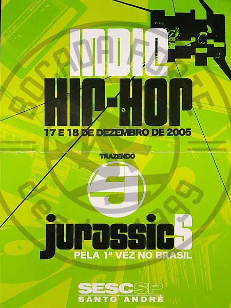 8-2-199x300 Acervo BF e Memória | Indie Hip Hop 2005 - O épico show do Jurassic 5 em Santo AndréOs dias 17 e 18 de dezembro de 2005 ficarão gravados na memória de todos aqueles que compareceram e vivenciaram o grande espetáculo que foi o Indie Hip-Hop 2005. Um verdadeiro show de organização, energia e positividade. Os cinco jurássicos do Hip-Hop – DJ Nu-Mark, Chali2na, Zaakir, Marc 7 e Akil – representaram, nos dois dias de apresentação, tudo o que se pode esperar de um grupo de Rap ligado a original cultura de rua chamada Hip-Hop.