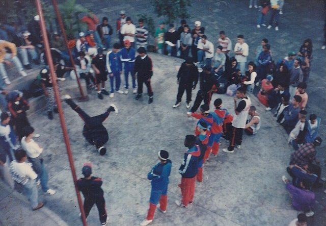 Imaginem isso numa época onde tudo era mais difícil. Um evento com MCs batalhando, graffitis sendo feitos na hora em espaço separado, workshops, banda de original funk, DJs e, lógico, a competição de breaking.