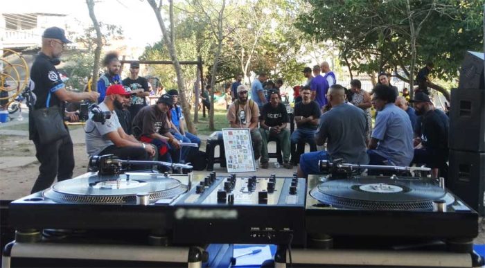 “É cada vez mais necessário estar ao lado das pessoas da quebrada e dos artistas em suas diferentes formas de manifestação. Assim como, o compartilhamento de ideias. Eu e Jair Cortecertu estivemos numa roda de conversa sobre Território, Hip-Hop e Cidadania como forma de reafirmar os rituais circulares de nossas ancestralidades e também debater ideias, experiências, percepções que só o cotidiano revela”, continua o MC e geógrafo.